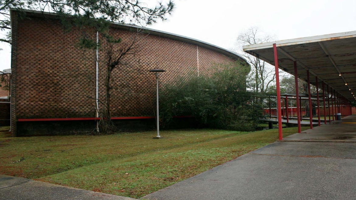 One iconic structure remained intact – the fan-shaped Performing Arts Theater, built in 1949 and listed on the National Register of Historic Places for its architectural significance. It is thought to have been designed by notable architect A. Hays Town. Its raised elevation shielded it from the flood's worst effects. Town also designed the other primary buildings on campus in the 1950s; however, a 1972 addition obscured the Town design. Manning's design approach respected the historical essence of the school, restoring the clean, geometric lines of the original Hays Town buildings and using similar materials like brick and cast concrete to blend the old with the new seamlessly.