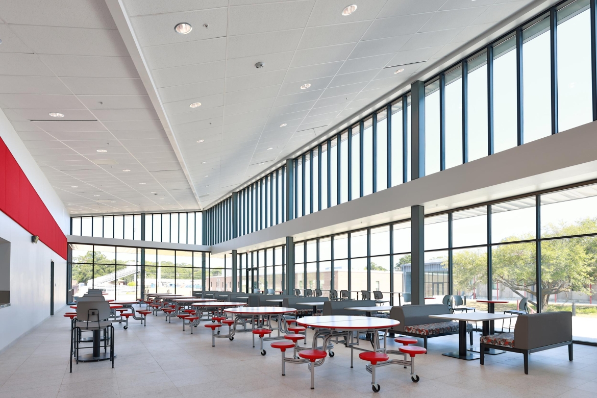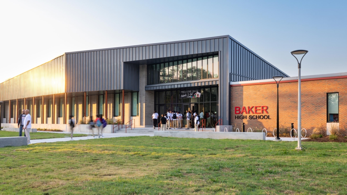 Baker High School was severely damaged during the Baton Rouge flood of 2016. The redesign was an opportunity to address programs that had outgrown their facilities, accommodate new programs, and unify the 27-acre site that had been checkerboarded with additions over the course of many years.