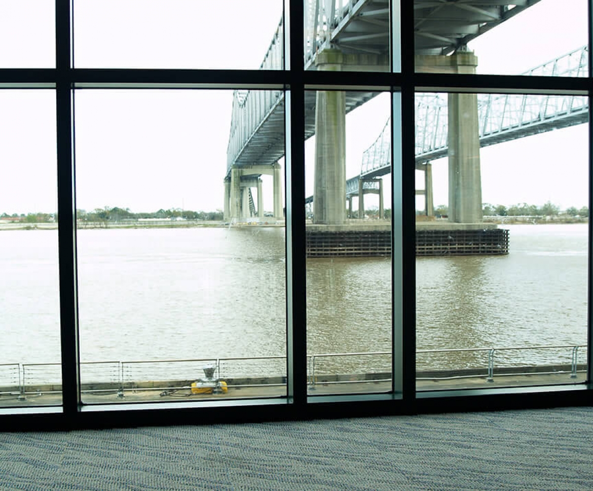 Manning renovated the existing Erato Street Cruise Terminal Complex located on the New Orleans Riverfront. The renovations focused on a new solution for flooring that would stand up to the high traffic the cruise terminal receives during disembarkation, a long-standing issue for the port. Manning’s practical solution was to break up the space into high and low traffic zones. The rubber flooring used in the high traffic zones was durable and also prevented fatigue for standing passengers. Custom carpet tiles were used in areas that received less foot traffic. The end result was a beautiful space that blended in with the existing architecture and materials, as well as a space that was practical from a maintenance perspective.
