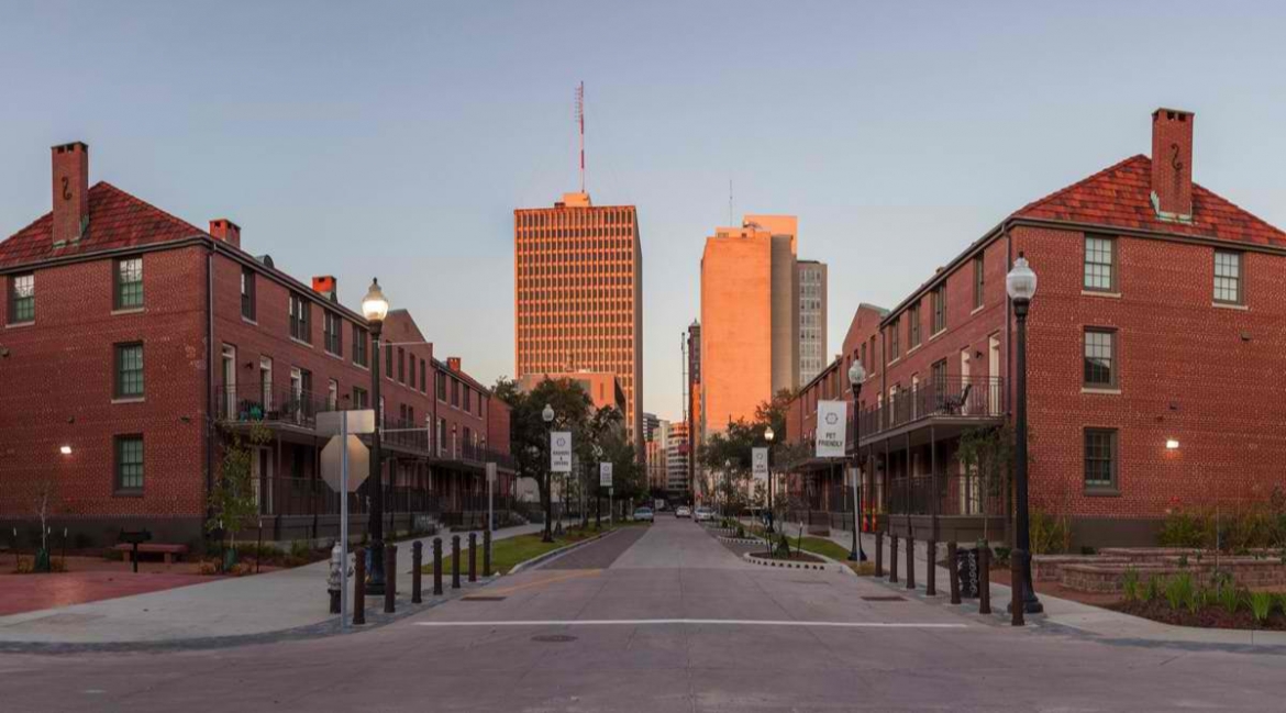 The Iberville Housing Project was built in 1942 on twenty-three acres adjacent to New Orelans’ French Quarter. While the architecture resembled 19th-century row houses, life there in the 21st century had become anything but picturesque. To combat the crises facing public housing, the City of New Orleans authorized its redevelopment.