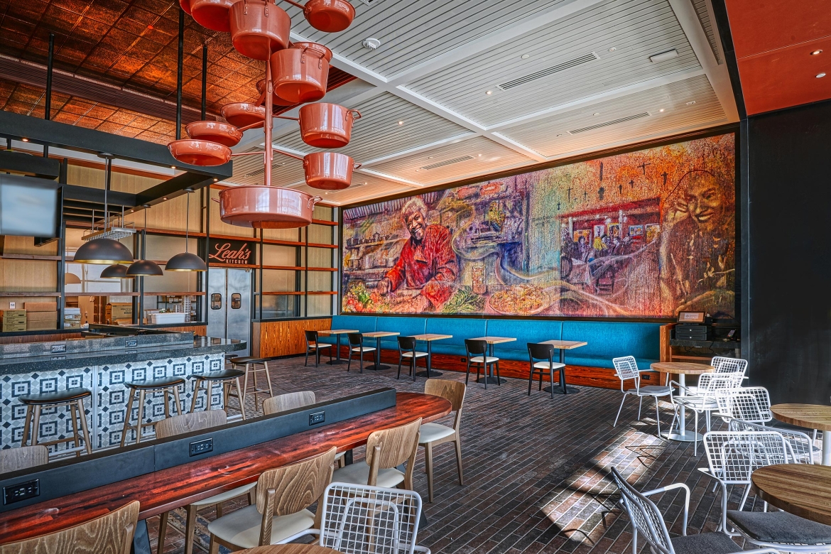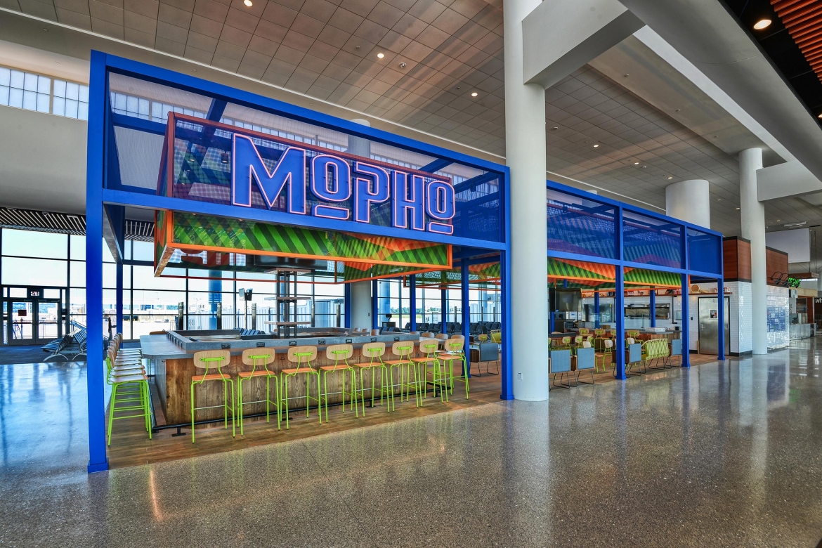 The design team worked with locally and nationally famous New Orleans brands for locations throughout the new 35-gate international airport, offering travelers the vibrant encounters they might find at: