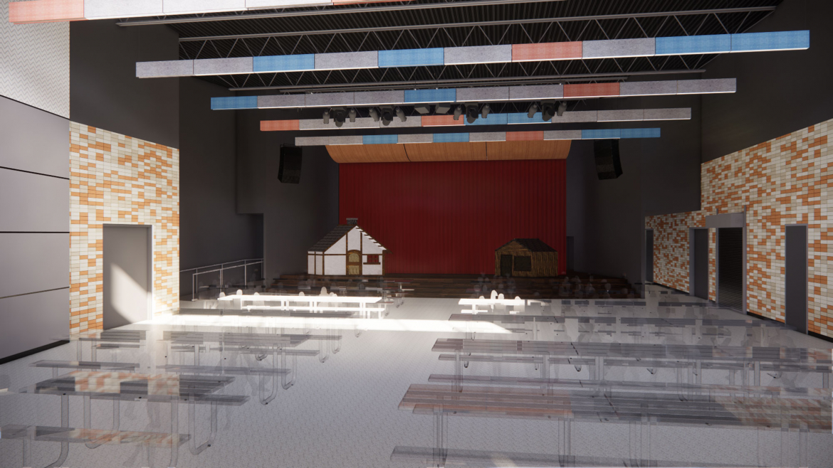 academic wings, a cafeteria, gym, media center, special education, visual and