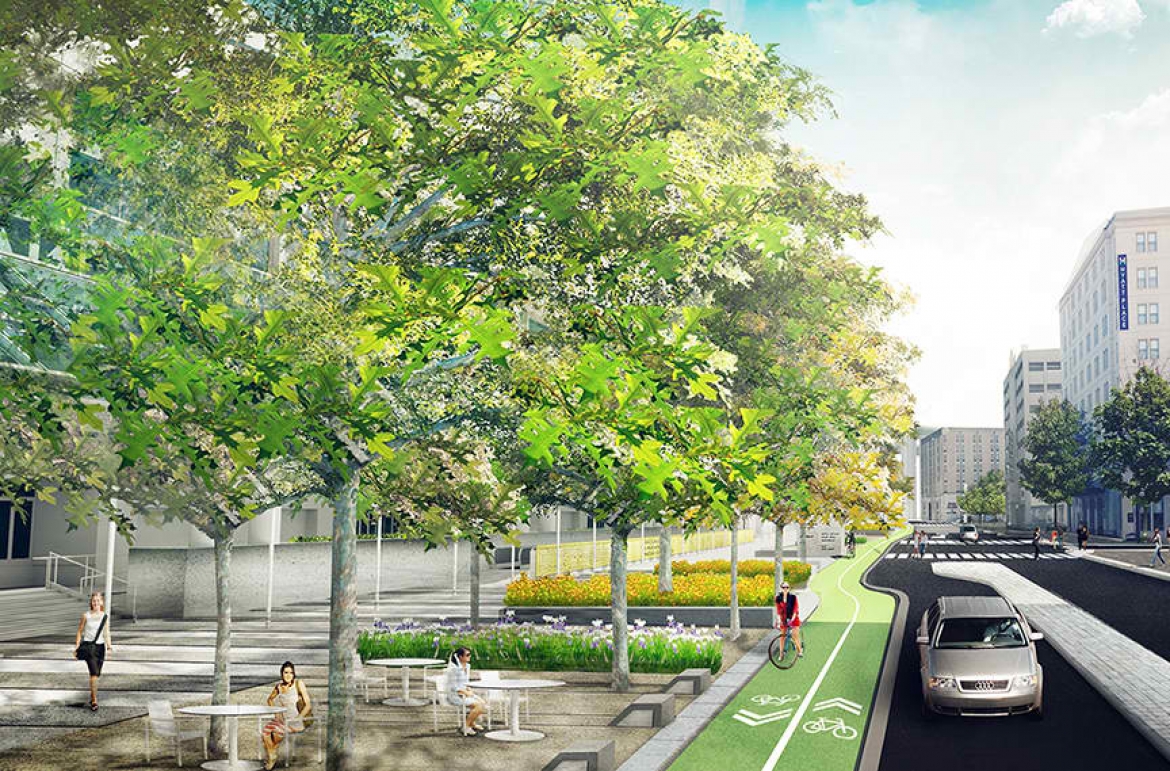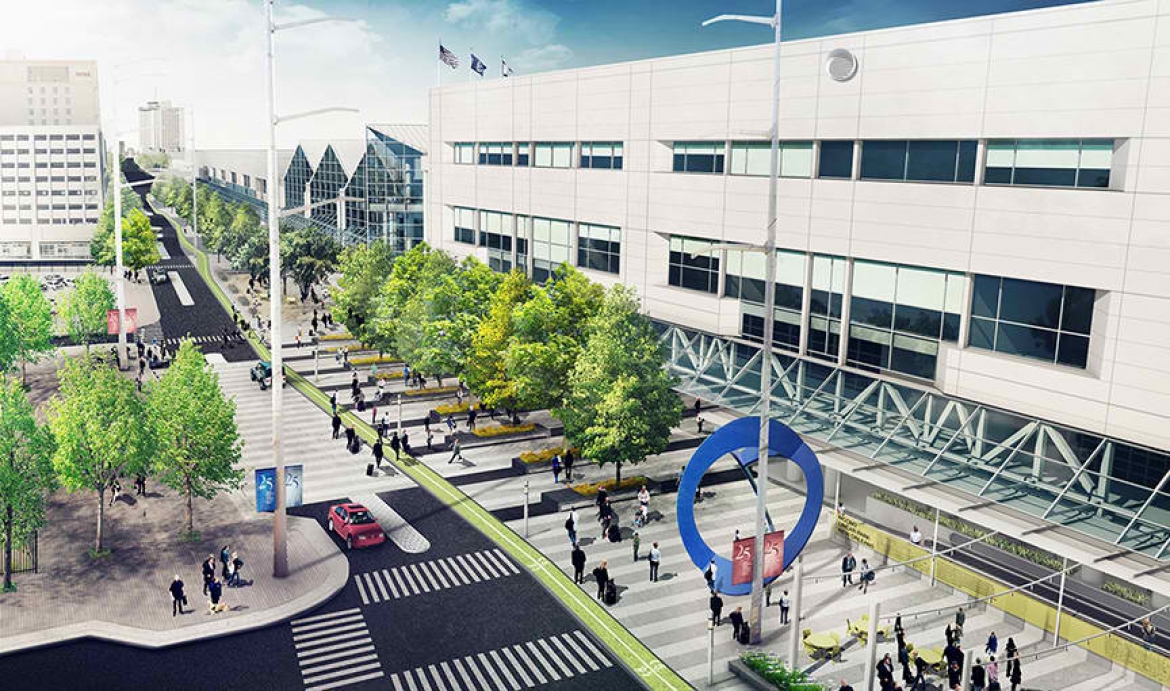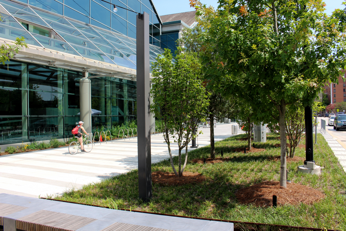 In addition to the vibrant user experience enhancement, the park's design helped achieve the Convention Center's LEED Gold Operations and Maintenance certification, a significant accomplishment. 200 trees line the promenade, and the landscaped rain gardens are part of the stormwater management strategy for the sixth-largest convention center in the nation.