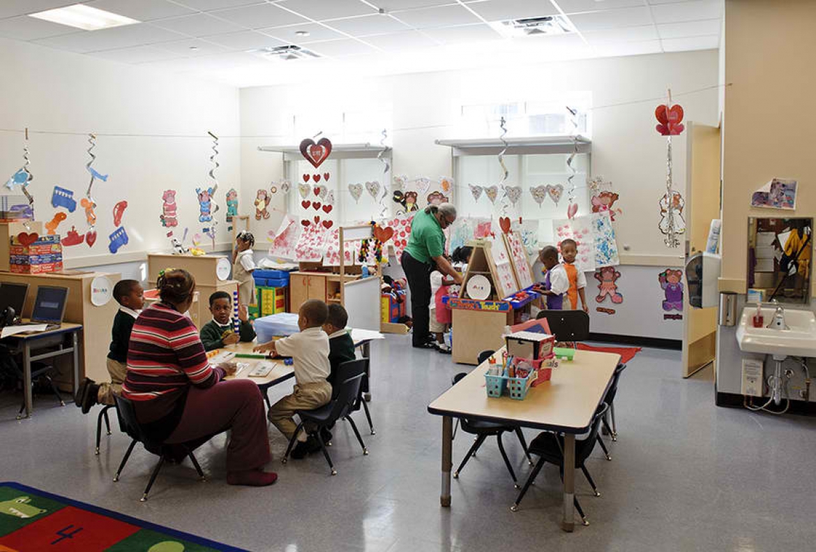The new building supports the school with additional classrooms, administrative offices, conference rooms, library, and kitchen. To highlight the connection between the school and the adjacent St. Peter Claver Catholic Church, the team designed a walkway canopy that connects the school buildings and the church. The design team worked with local artists to create artwork throughout the campus. Our interior designers assessed and reused select furnishings and equipment where appropriate, but specified all new furnishings, smart boards, and enhanced technology features in classrooms. Energy conservation, life cycle, and durability were addressed in all aspects of the design and construction of the school. The project was completed as part of the FEMA Alternate Project.